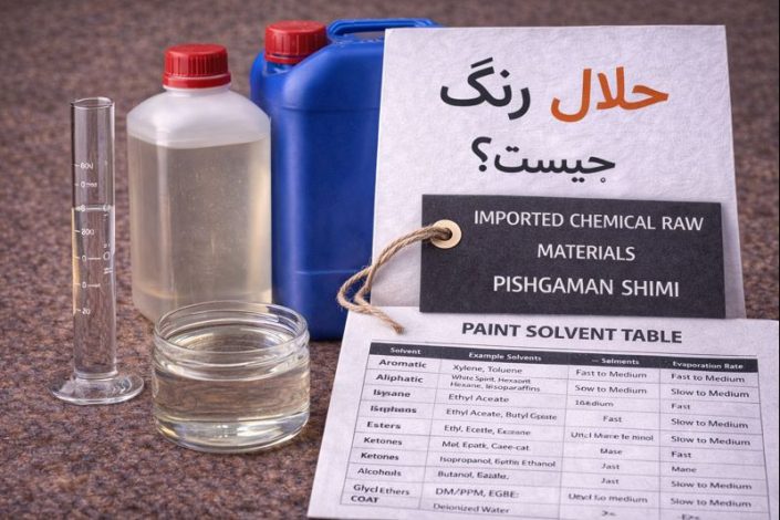 حلال رنگ چیست؟ (تعریف دقیق برای تولیدکنندهها) حلال رنگ (Paint Solvent) مایعی است که رزین/بایندر و بعضی افزودنیهای فرمول را حل یا پخش میکند تا ویسکوزیته به محدوده قابل اعمال برسد (اسپری، قلم، غلطک). بعد از اعمال، حلال تبخیر میشود و فیلم رنگ شکل میگیرد. برای تولیدکننده، انتخاب حلال فقط “رقیقکردن” نیست؛ مستقیم روی این موارد اثر میگذارد: سرعت خشکشدن و زمان بیچسبندگی (Tack-free) براقیت، همسطحشدن (Leveling) و کاهش پوست پرتقالی پخشپذیری پیگمنت و یکنواختی رنگ پایداری در انبار، تهنشینی و ژلشدن ایمنی، VOC و بوی محصول نهایی فرق حلال با تینر چیست؟در عمل، «تینر» معمولاً ترکیب چند حلال با نرخ تبخیر متفاوت است که برای تنظیم ویسکوزیته و رفتار اجرایی رنگ طراحی میشود. اما «حلال رنگ» میتواند یک ماده تکی (مثل اتیل استات) یا جزئی از تینر باشد. مهمترین سؤال تولیدکنندهها: کدام حلال برای کدام رزین؟ قاعده ساده این است: قطبیت حلال باید با ماهیت رزین همخوان باشد و نرخ تبخیر هم با شرایط خط (دما/رطوبت/روش اعمال) تنظیم شود.مثلاً: رنگهای آلکیدی معمولاً با آروماتیکها و آلیفاتیکها (مثل زایلن/وایت اسپریت) بهتر پاسخ میدهند. سیستمهای نیتروسلولزی و فوری بیشتر به کتونها/استرها (مثل MEK و اتیل استات) نیاز دارند. بسیاری از سیستمهای پلییورتان/اپوکسی برای حلپذیری و کنترل ویسکوزیته به استرها و گلیکولاترها …